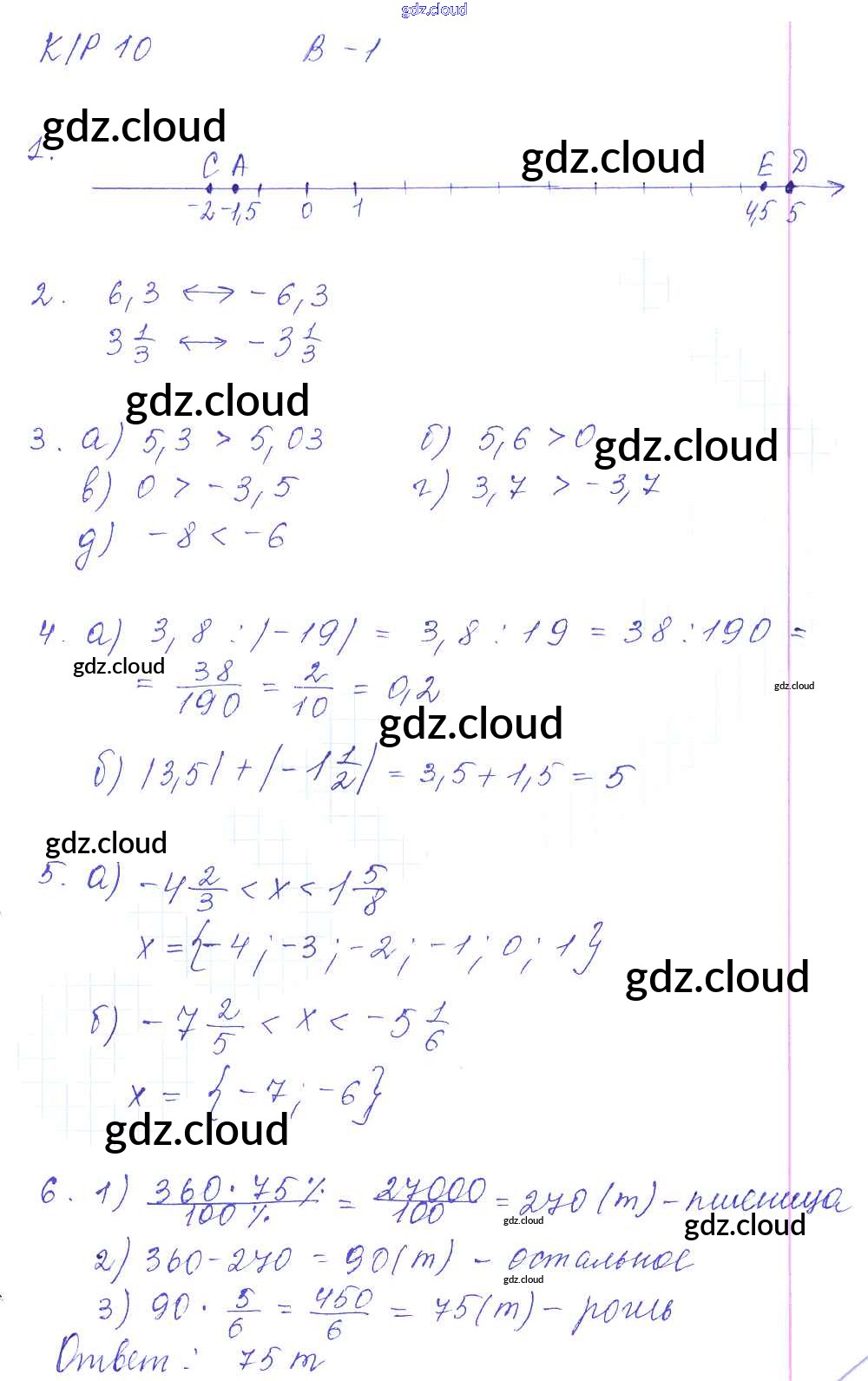 Ответ на задание 1 Контрольные работы Математика за 6 (шестой) класс Дудницын, Кронгауз УМК 2013 ФГОС онлайн и без номера телефона.