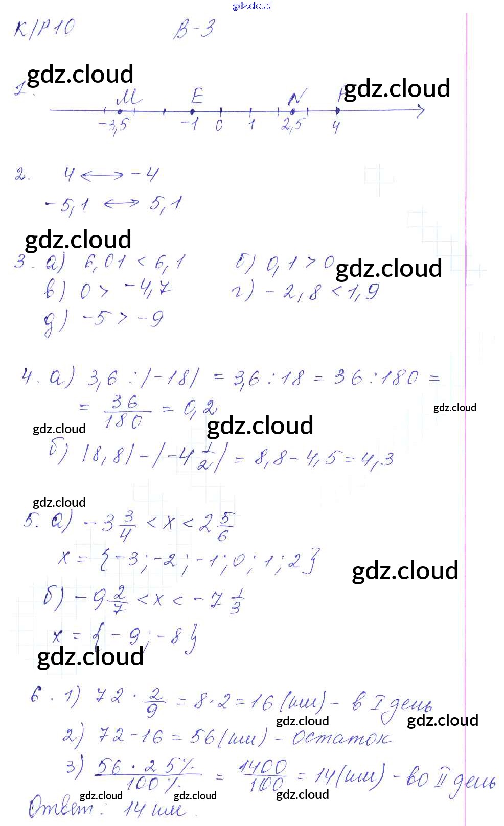 Ответ на задание 3 Контрольные работы Математика за 6 (шестой) класс Дудницын, Кронгауз УМК 2013 ФГОС онлайн и без номера телефона.
