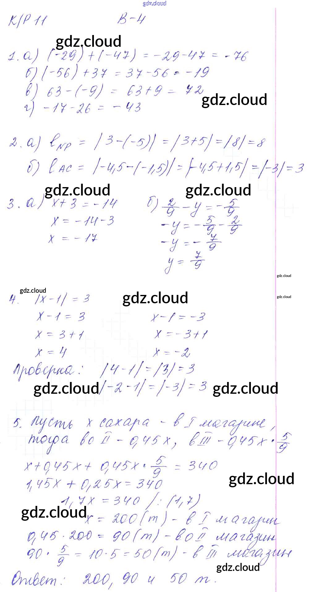 Ответы к КР-11. Варианты по Математике 6 класс Контрольные работы Дудницын УМК Экзамен