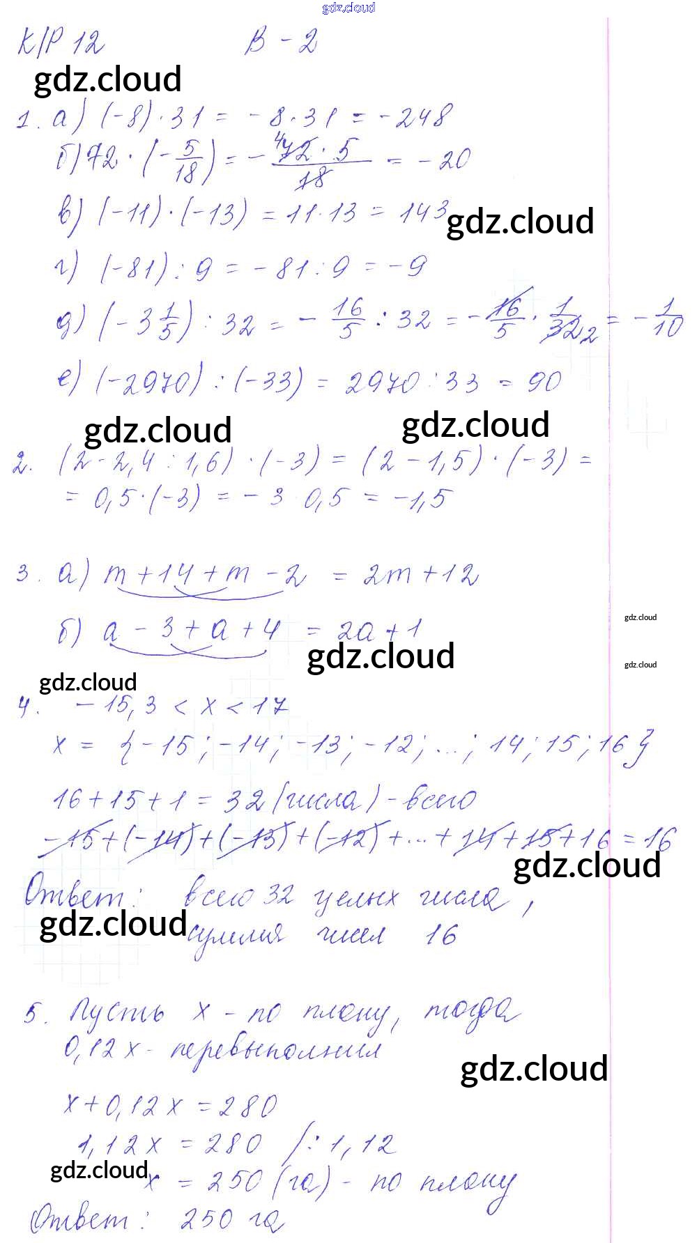 Ответ на задание 2 Контрольные работы Математика за 6 (шестой) класс Дудницын, Кронгауз УМК 2013 ФГОС онлайн и без номера телефона.