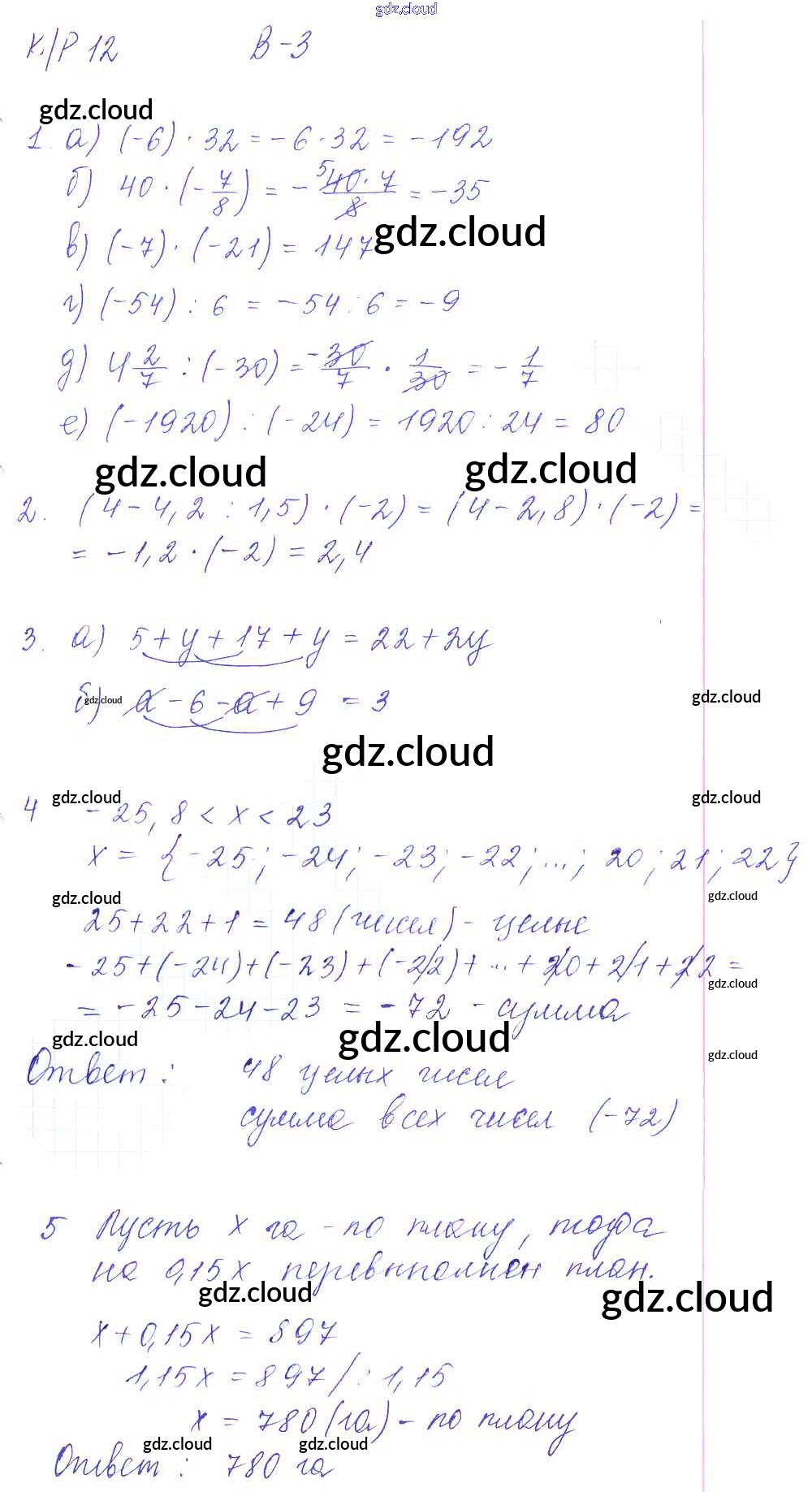 Ответ на задание 3 Контрольные работы Математика за 6 (шестой) класс Дудницын, Кронгауз УМК 2013 ФГОС онлайн и без номера телефона.