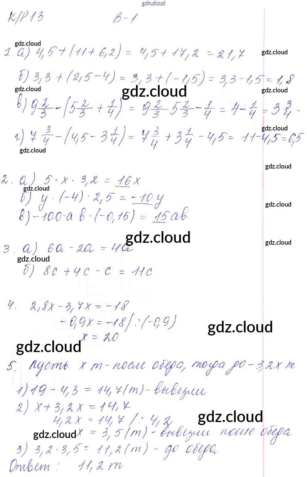 Ответы к КР-13. Варианты по Математике 6 класс Контрольные работы Дудницын УМК Экзамен