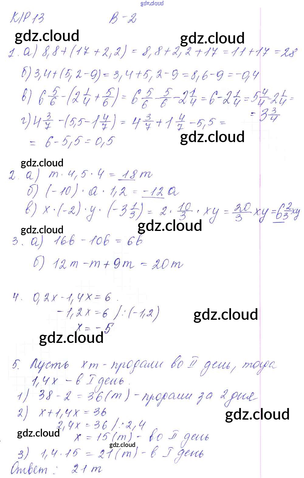 Ответ на задание 2 Контрольные работы Математика за 6 (шестой) класс Дудницын, Кронгауз УМК 2013 ФГОС онлайн и без номера телефона.