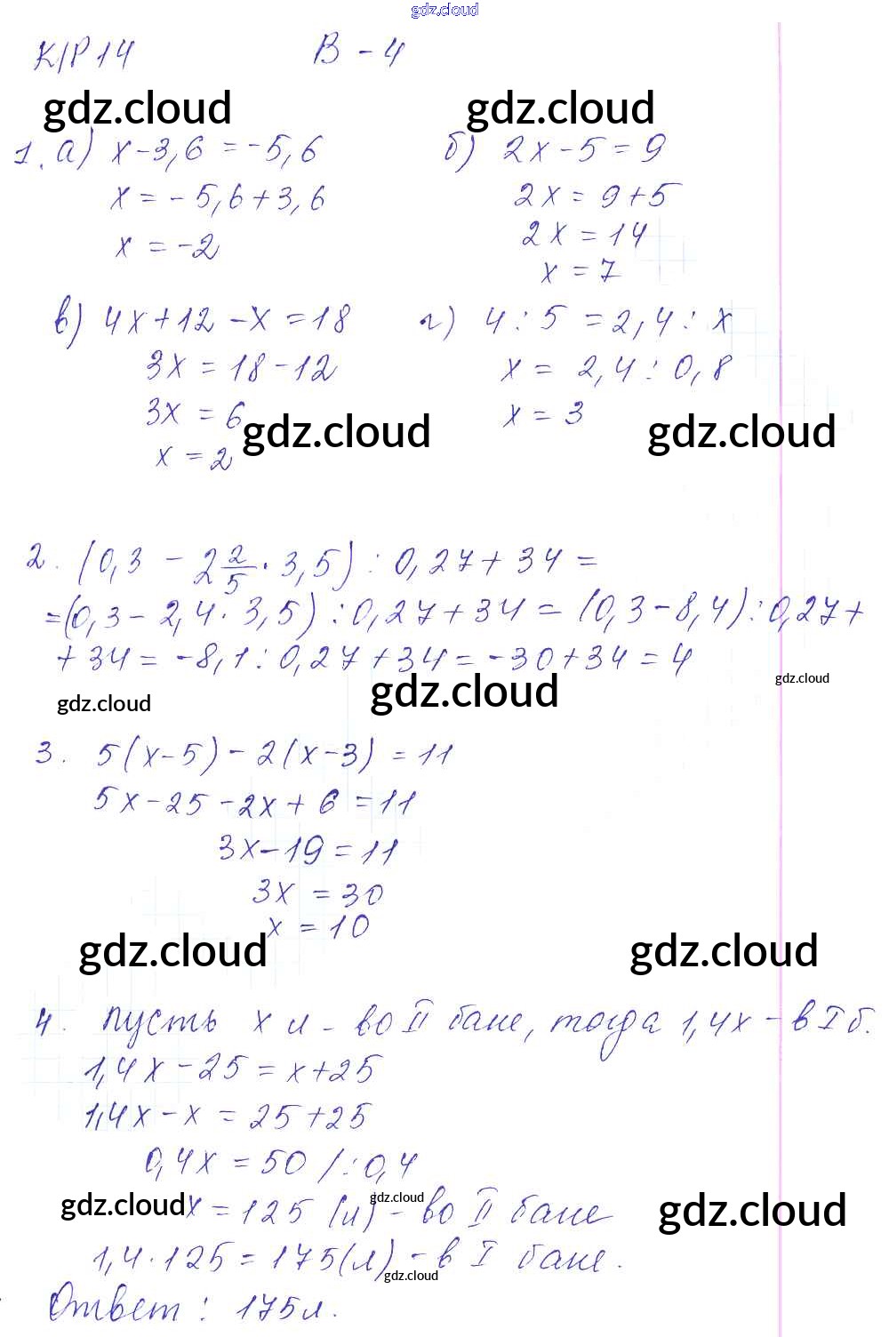 Ответы к КР-14. Варианты по Математике 6 класс Контрольные работы Дудницын УМК Экзамен
