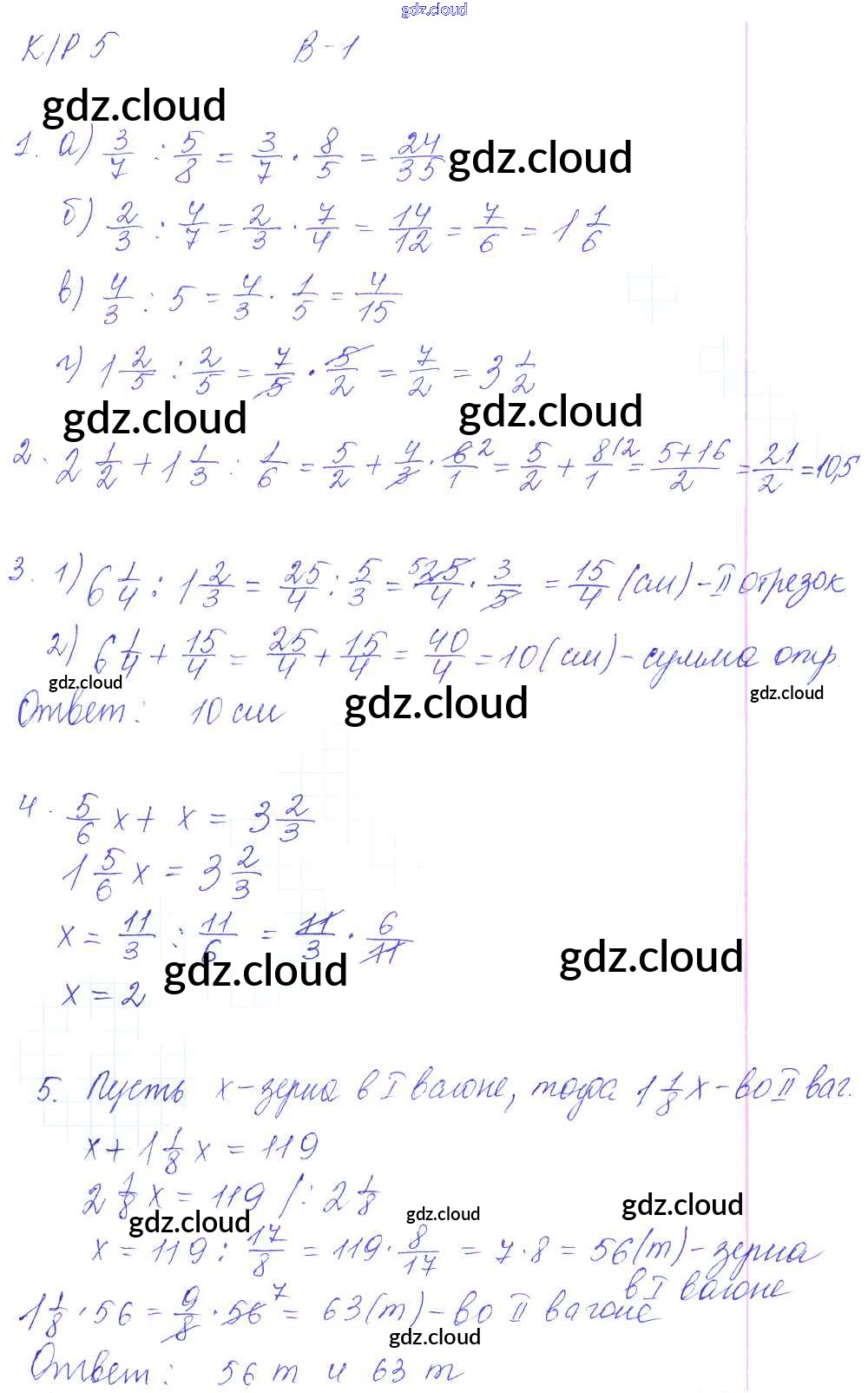 Ответы к КР-5. Варианты по Математике 6 класс Контрольные работы Дудницын УМК Экзамен