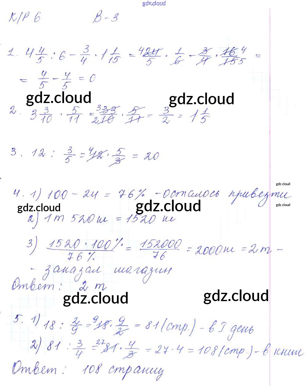 Ответ на задание 3 Контрольные работы Математика за 6 (шестой) класс Дудницын, Кронгауз УМК 2013 ФГОС онлайн и без номера телефона.