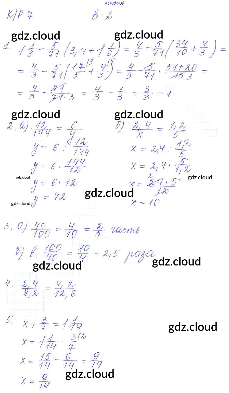 Ответ на задание 2 Контрольные работы Математика за 6 (шестой) класс Дудницын, Кронгауз УМК 2013 ФГОС онлайн и без номера телефона.