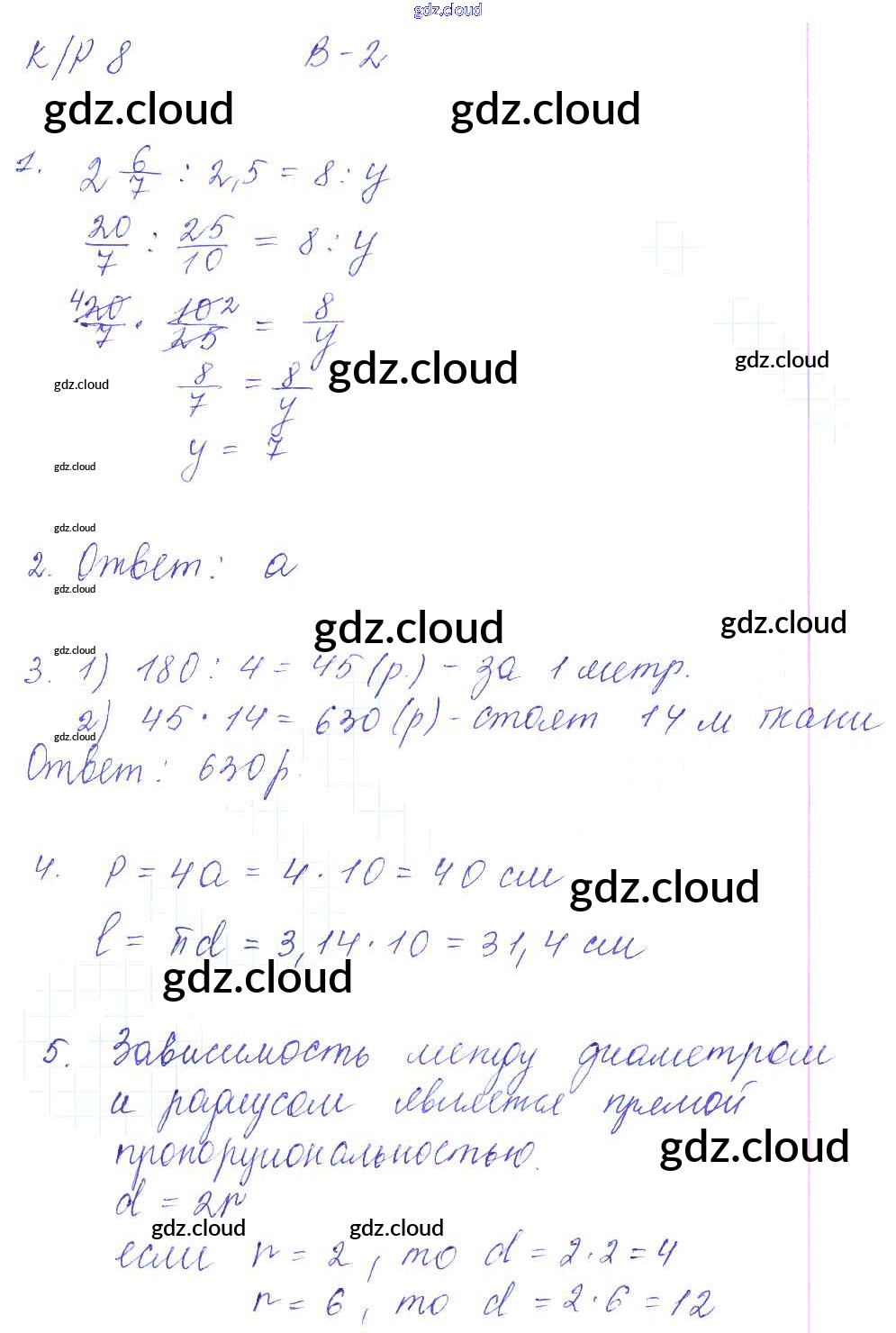 Ответы к КР-8. Варианты по Математике 6 класс Контрольные работы Дудницын УМК Экзамен