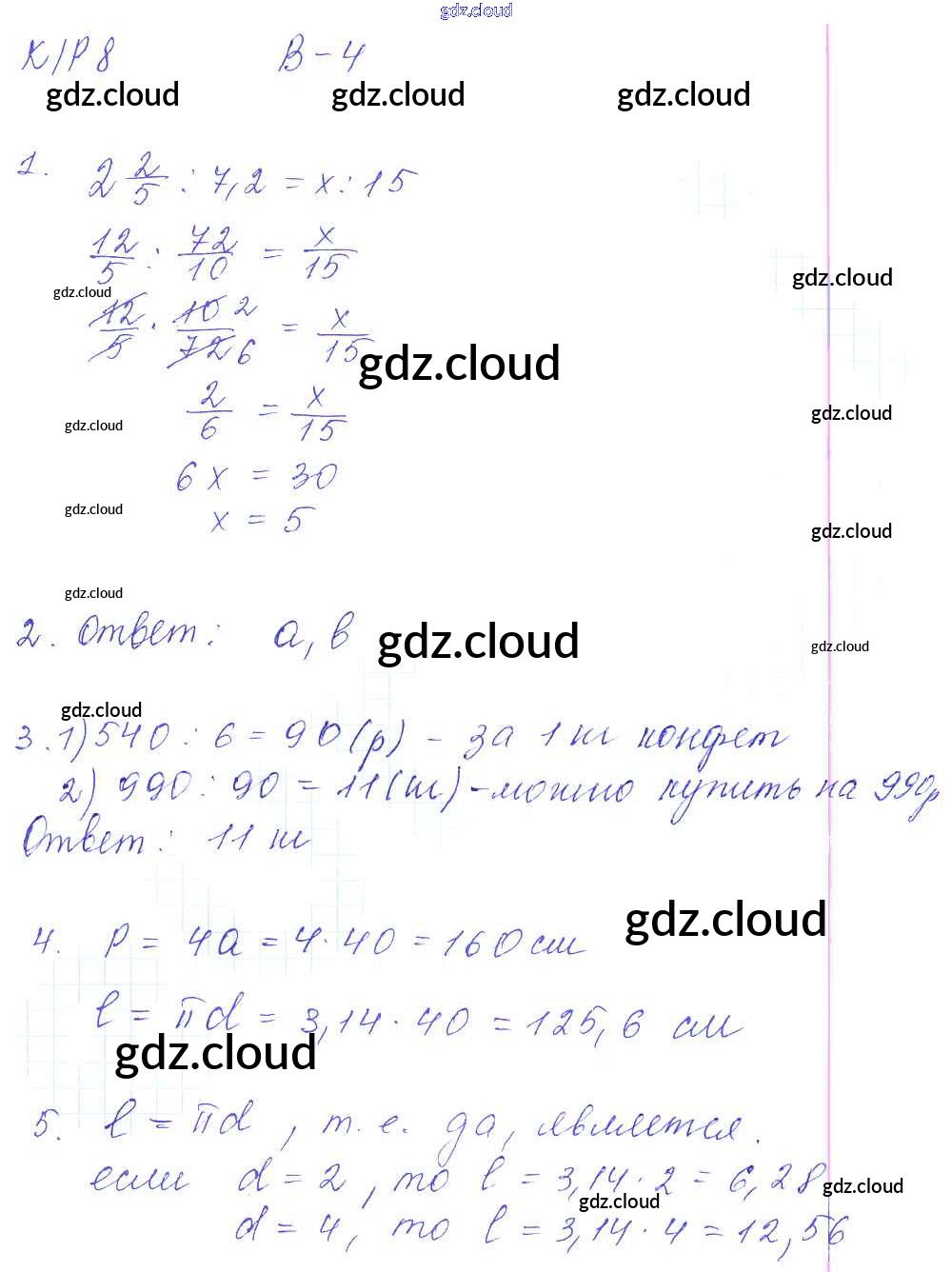Ответ на задание 4 Контрольные работы Математика за 6 (шестой) класс Дудницын, Кронгауз УМК 2013 ФГОС онлайн и без номера телефона.