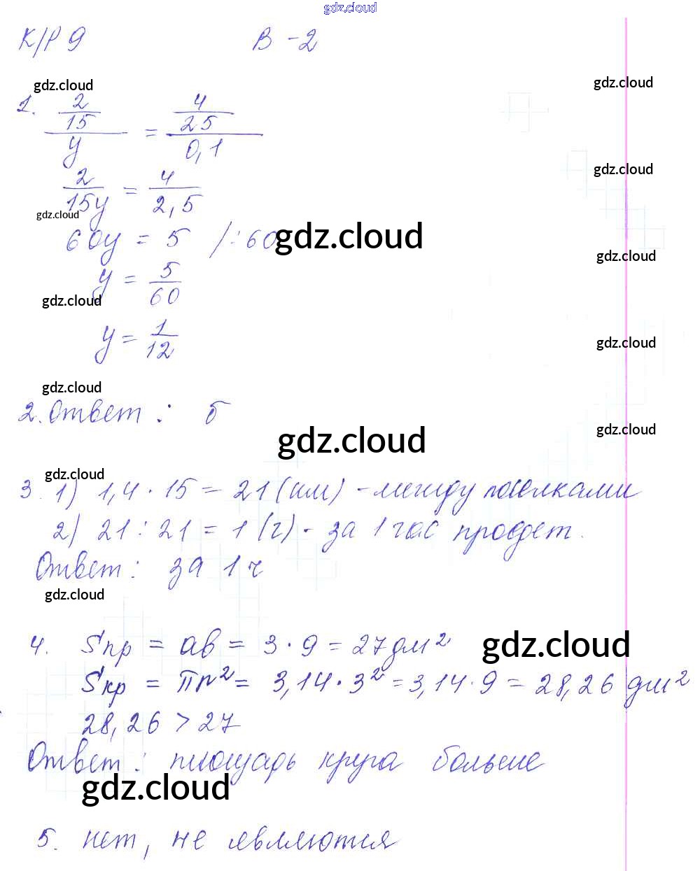 Ответы к КР-9. Варианты по Математике 6 класс Контрольные работы Дудницын УМК Экзамен