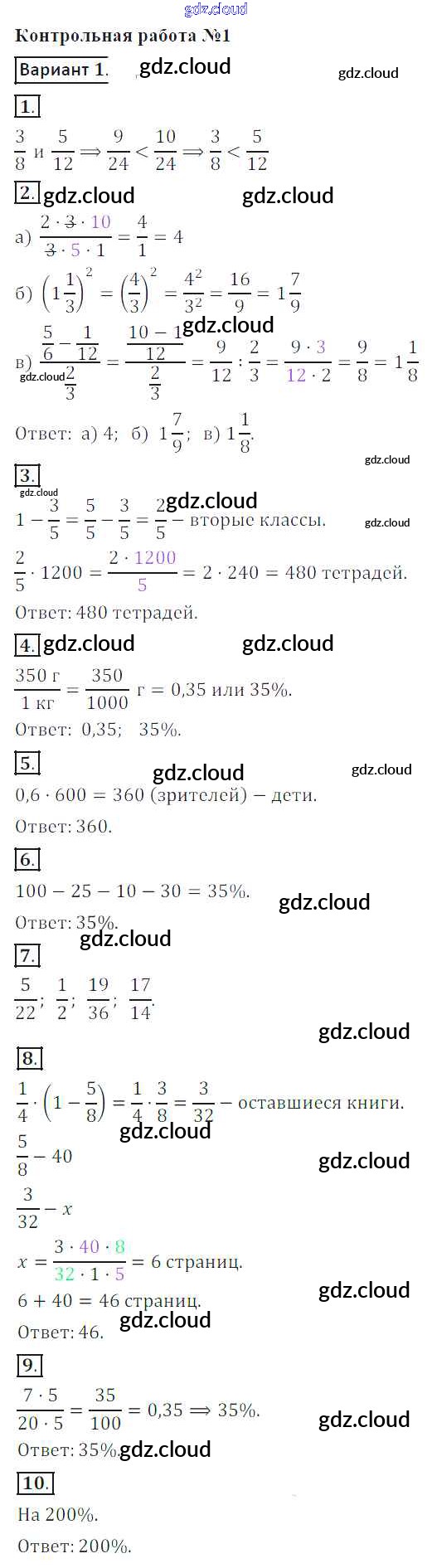 Ответы к КР-1. Варианты по Математике 6 класс Контрольные работы Кузнецова Просвещение