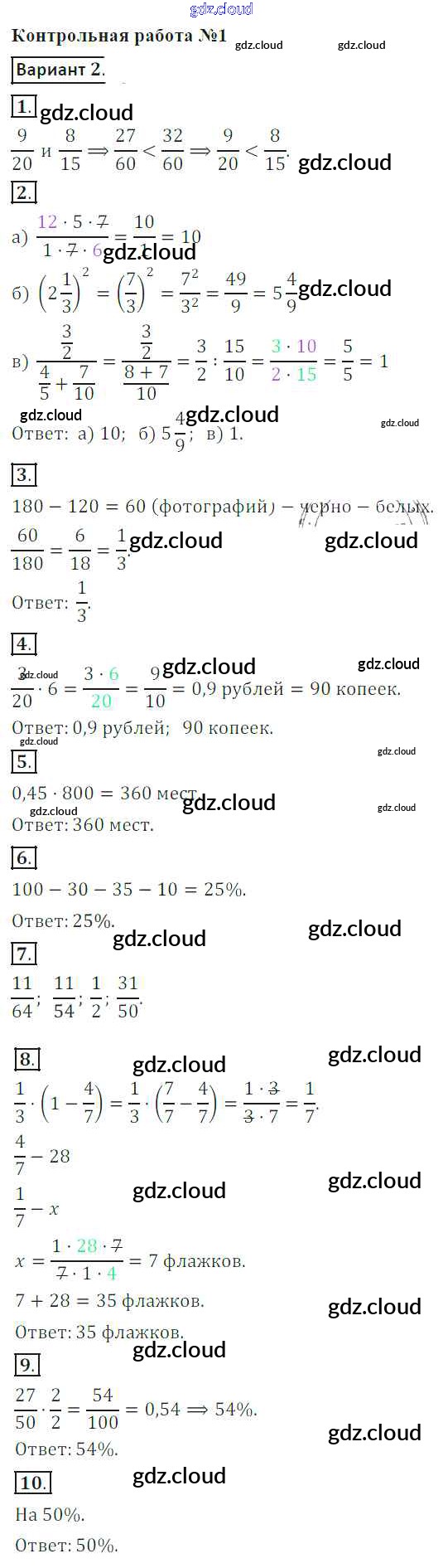 Ответы к КР-1. Варианты по Математике 6 класс Контрольные работы Кузнецова Просвещение