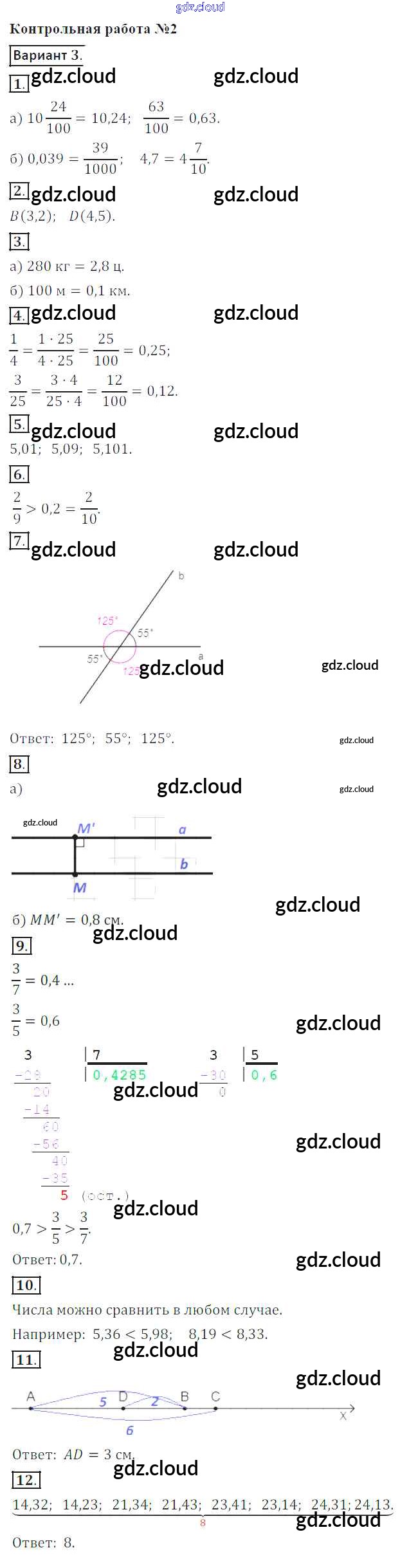 Ответы к КР-2. Варианты по Математике 6 класс Контрольные работы Кузнецова Просвещение