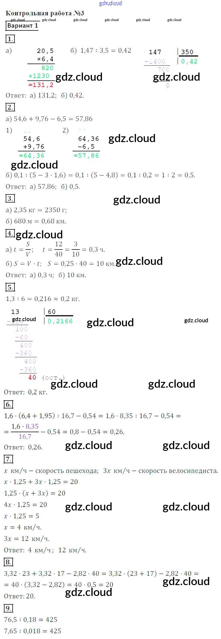 Ответы к КР-3. Варианты по Математике 6 класс Контрольные работы Кузнецова Просвещение