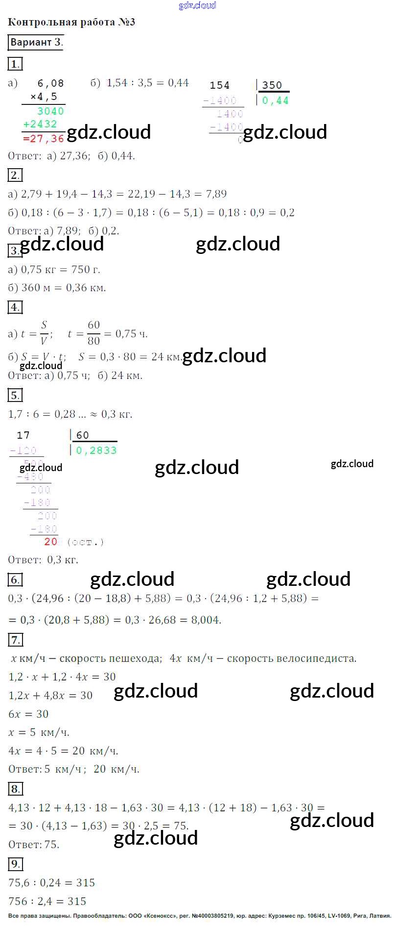 Ответы к КР-3. Варианты по Математике 6 класс Контрольные работы Кузнецова Просвещение