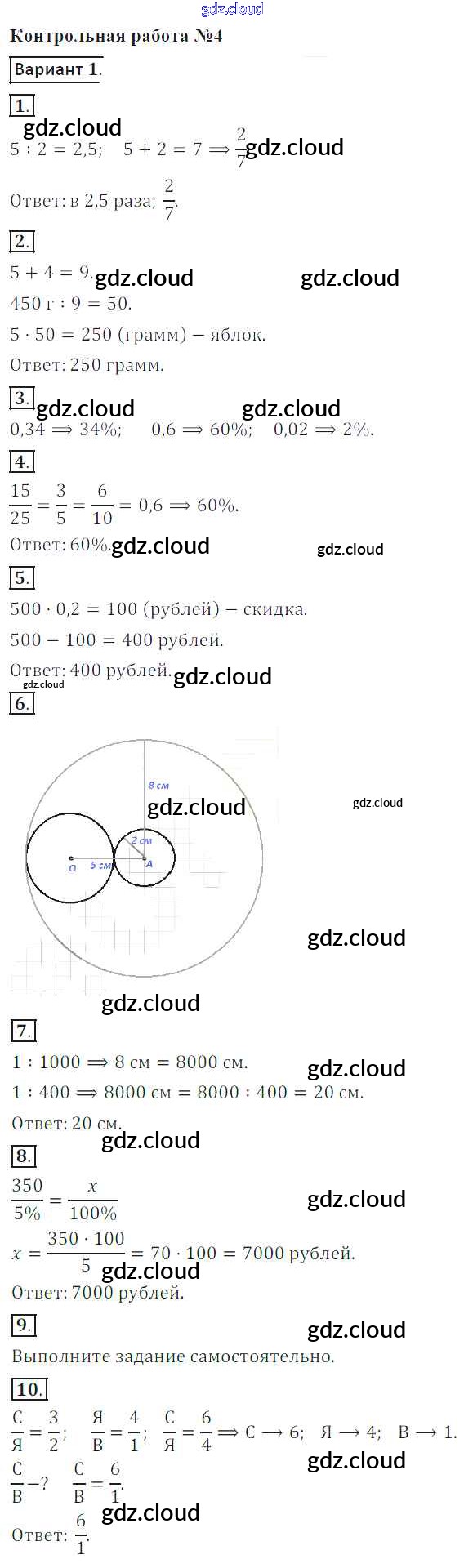Ответы к КР-4. Варианты по Математике 6 класс Контрольные работы Кузнецова Просвещение