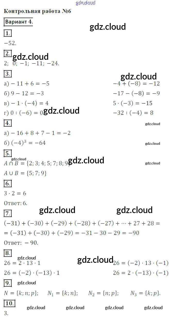 Ответы к КР-6. Варианты по Математике 6 класс Контрольные работы Кузнецова Просвещение