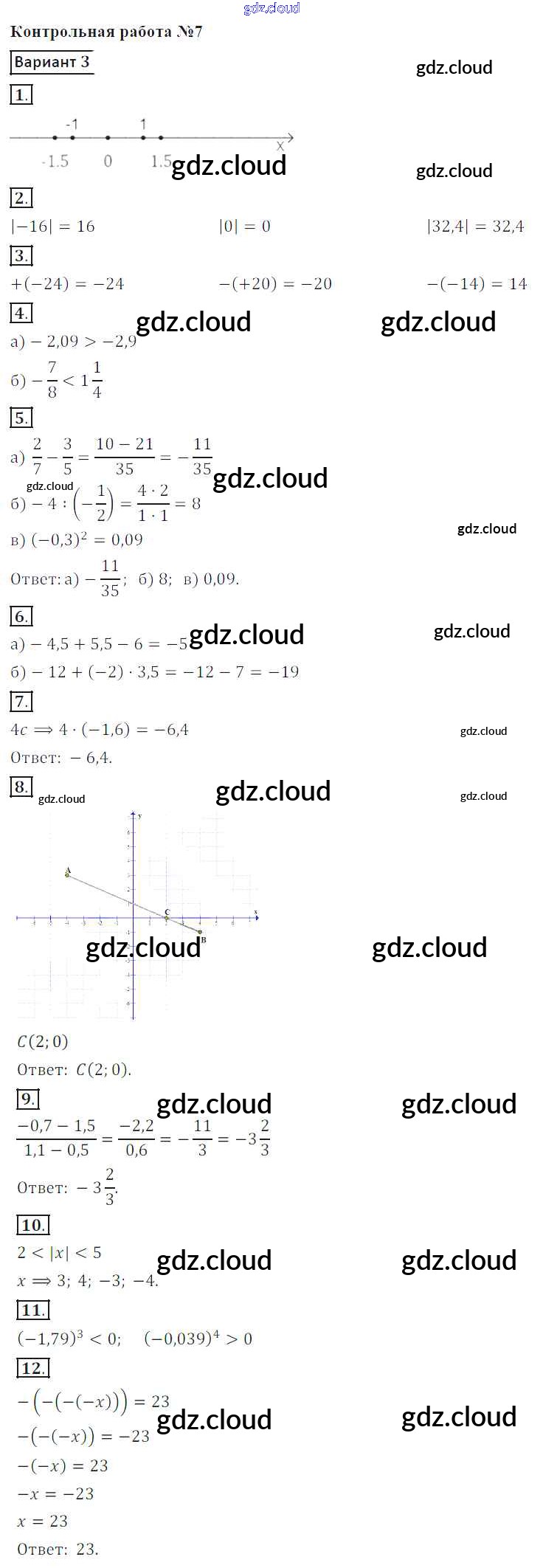 Ответы к КР-7. Варианты по Математике 6 класс Контрольные работы Кузнецова Просвещение