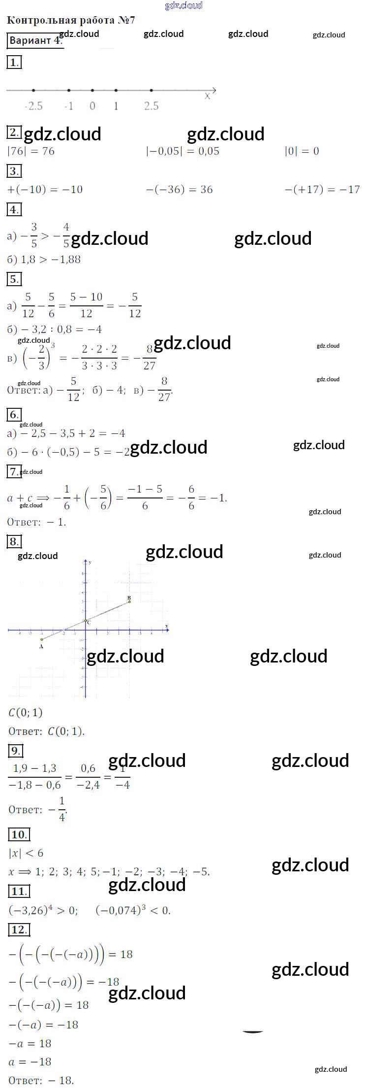 Ответы к КР-7. Варианты по Математике 6 класс Контрольные работы Кузнецова Просвещение
