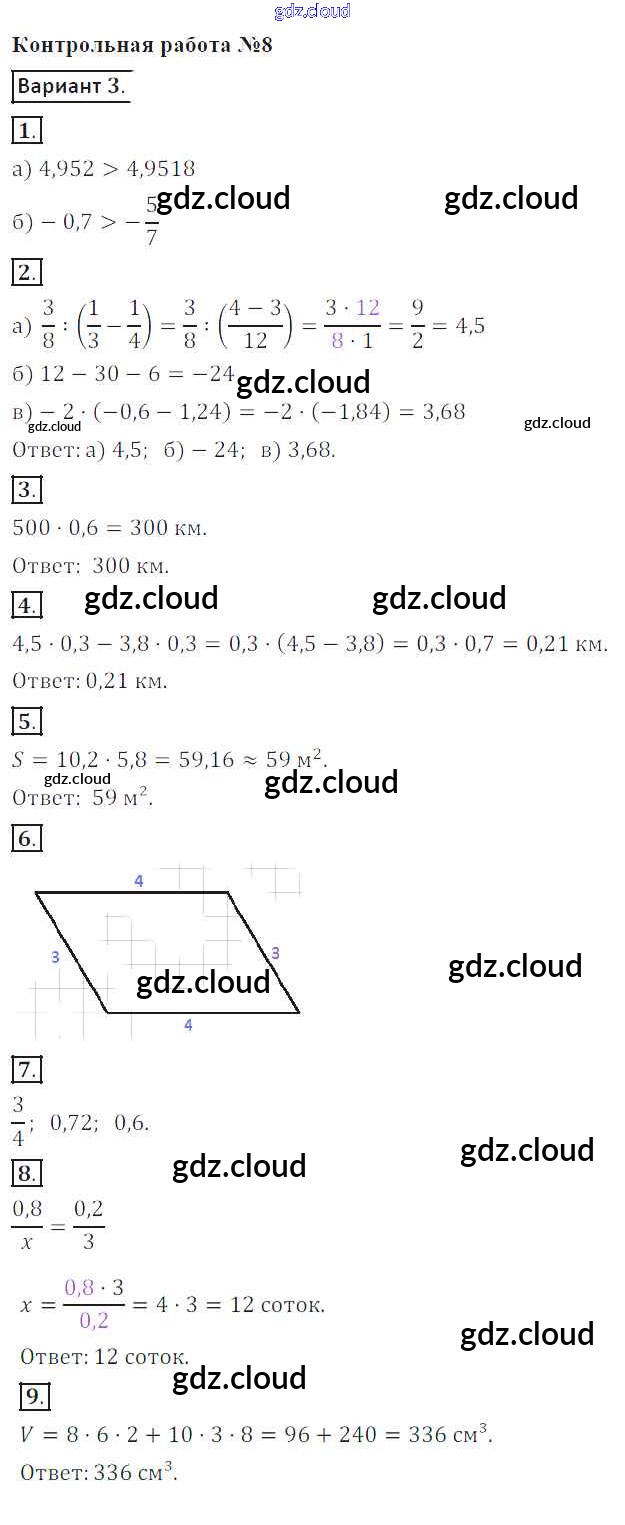 Ответ на задание 3 Контрольные работы Математика за 6 (шестой) класс Кузнецова, Минаева, Рослова, Суворова 2017