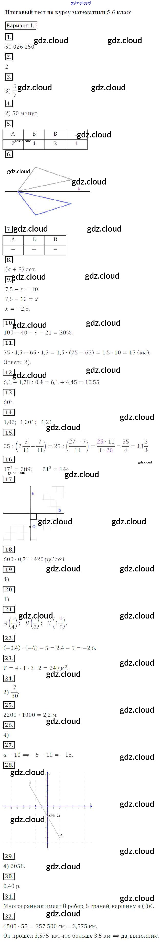 Ответы к Итоговому тесту по Математике 6 класс Контрольные работы Кузнецова Просвещение