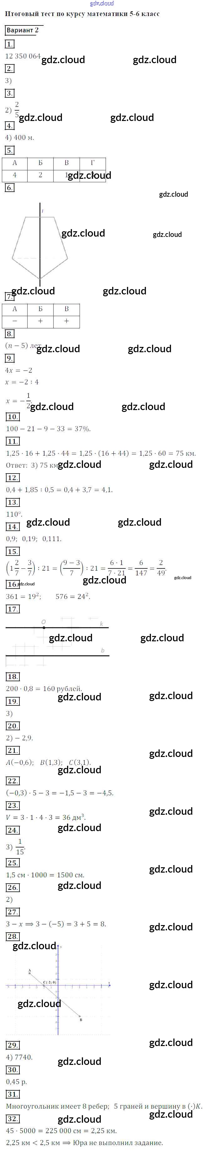 Ответы к Итоговому тесту по Математике 6 класс Контрольные работы Кузнецова Просвещение