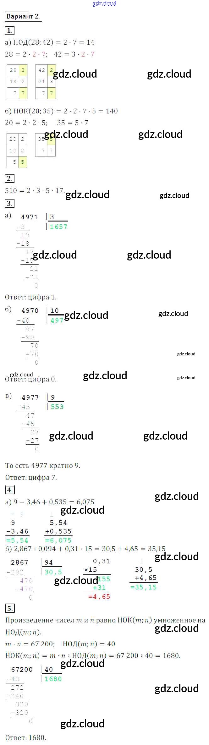 Ответ на задание 2 Контрольные работы Математика за 6 (шестой) класс Жохов, Крайнева 2011