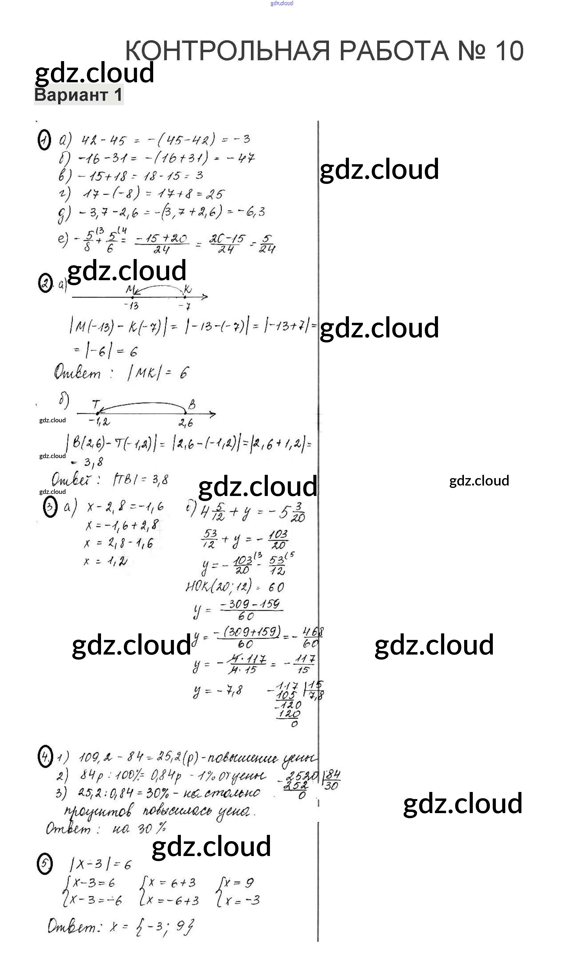 Ответы к КР-10. Варианты по Математике 6 класс Контрольные работы Жохов Мнемозина