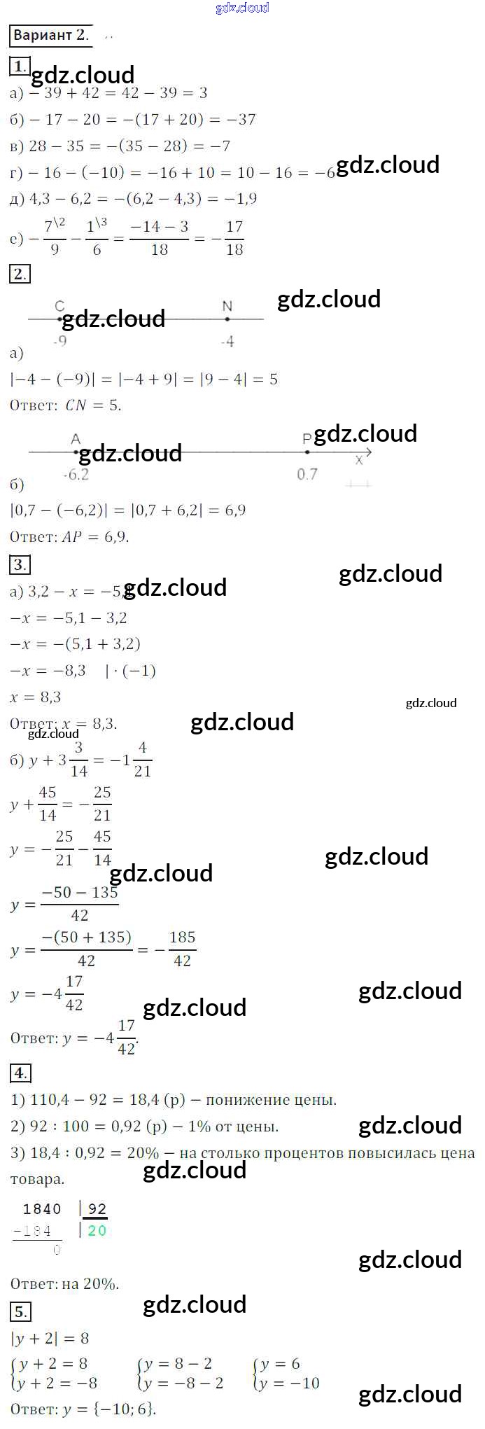 Ответ на задание 2 Контрольные работы Математика за 6 (шестой) класс Жохов, Крайнева 2011