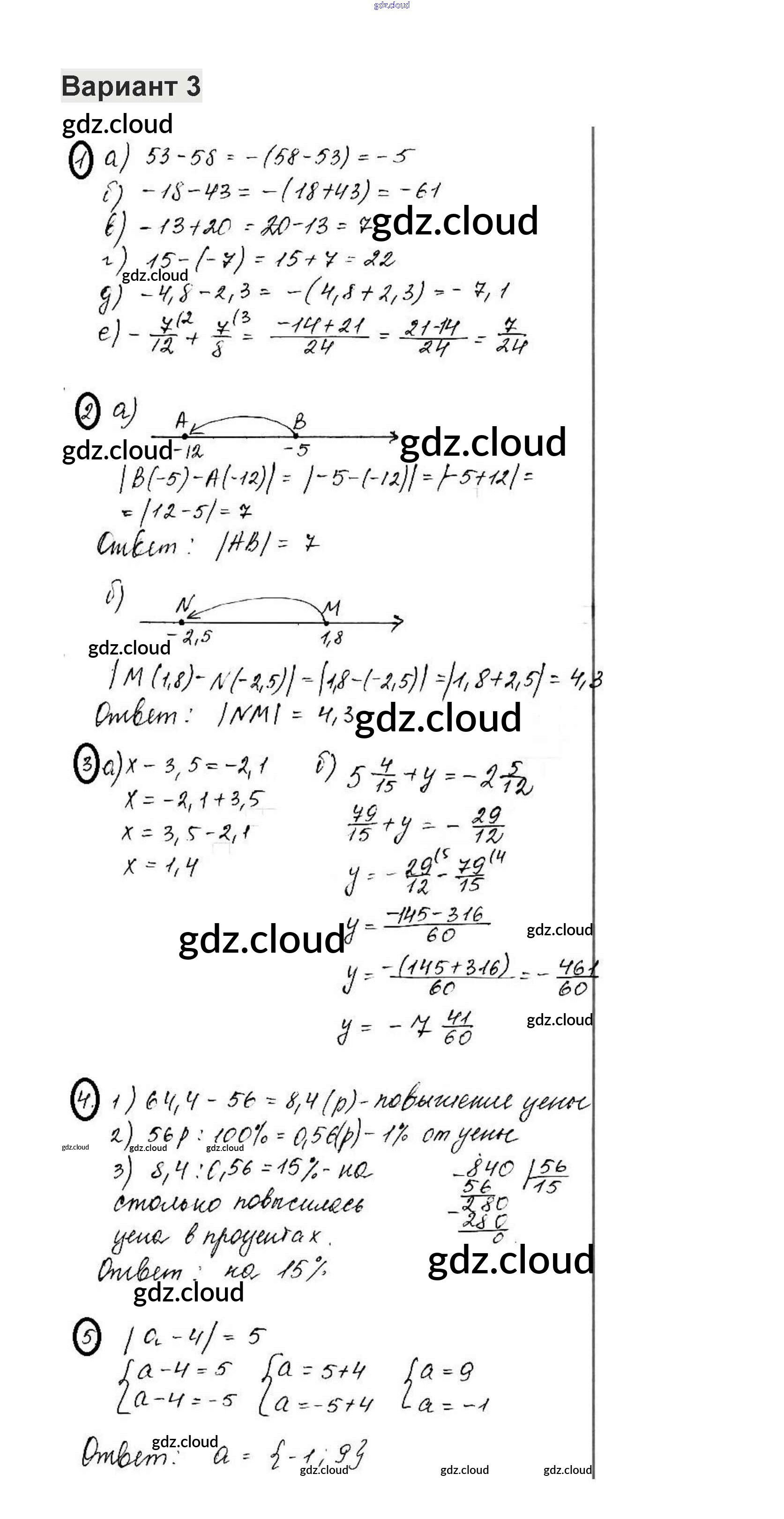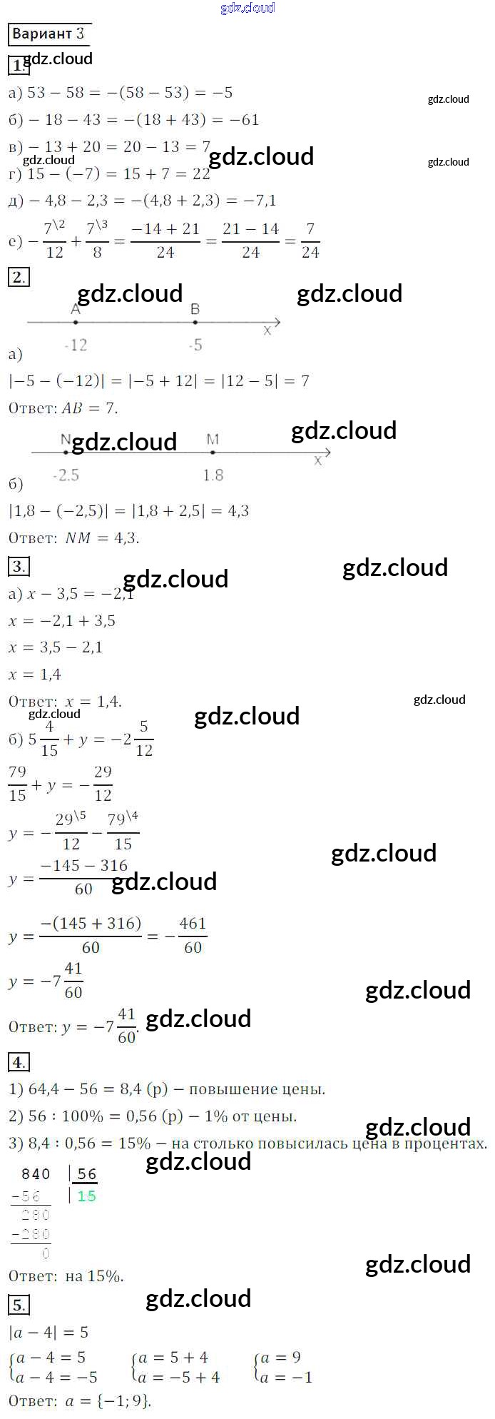 Ответ на задание 3 Контрольные работы Математика за 6 (шестой) класс Жохов, Крайнева 2011