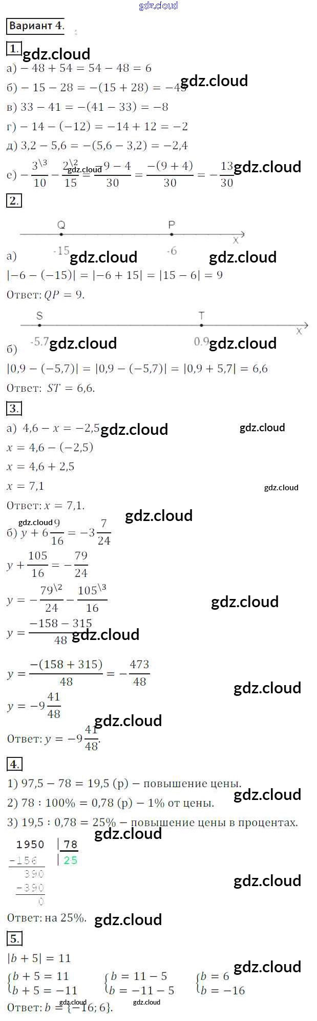 Ответ на задание 4 Контрольные работы Математика за 6 (шестой) класс Жохов, Крайнева 2011