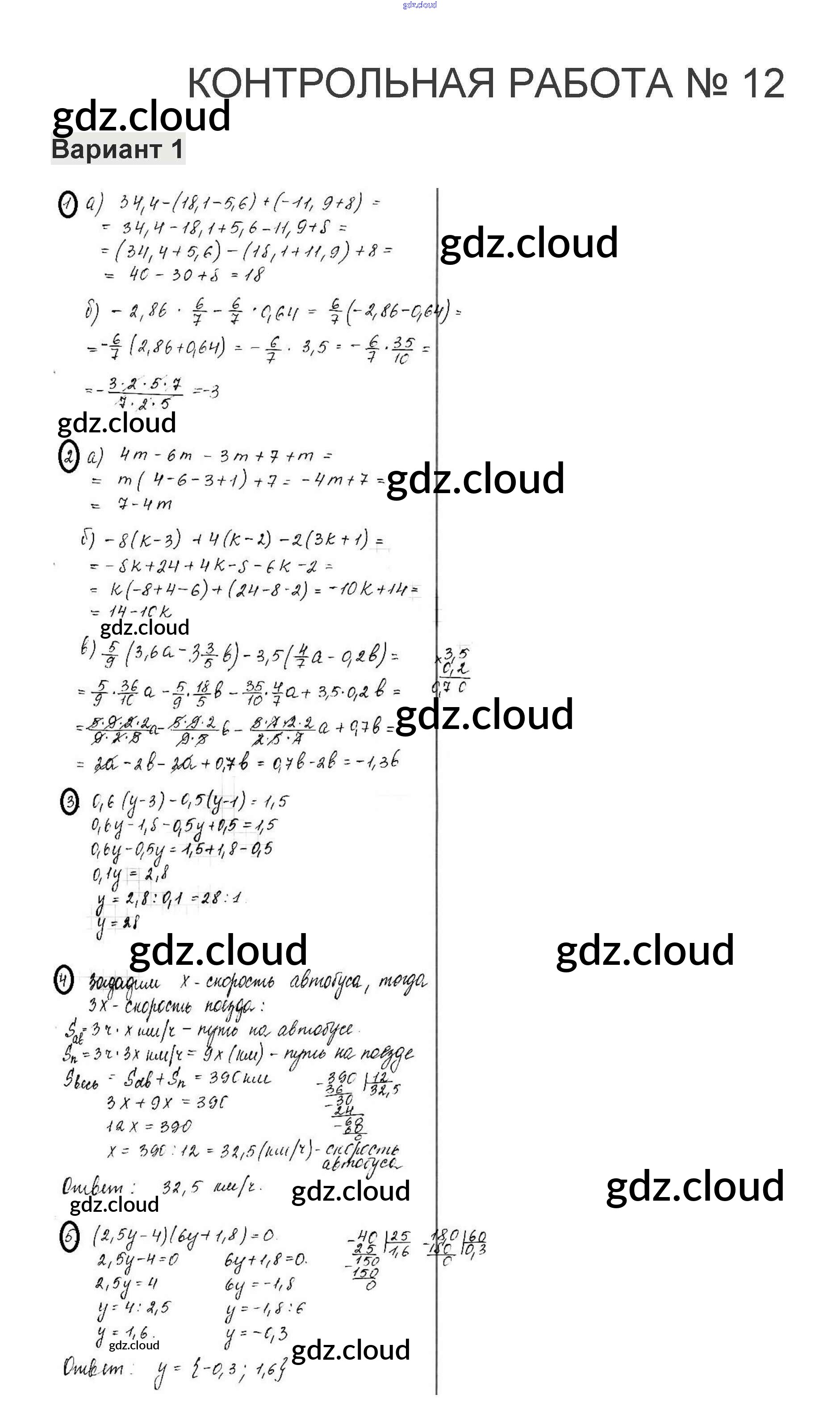 Ответы к КР-12. Варианты по Математике 6 класс Контрольные работы Жохов Мнемозина