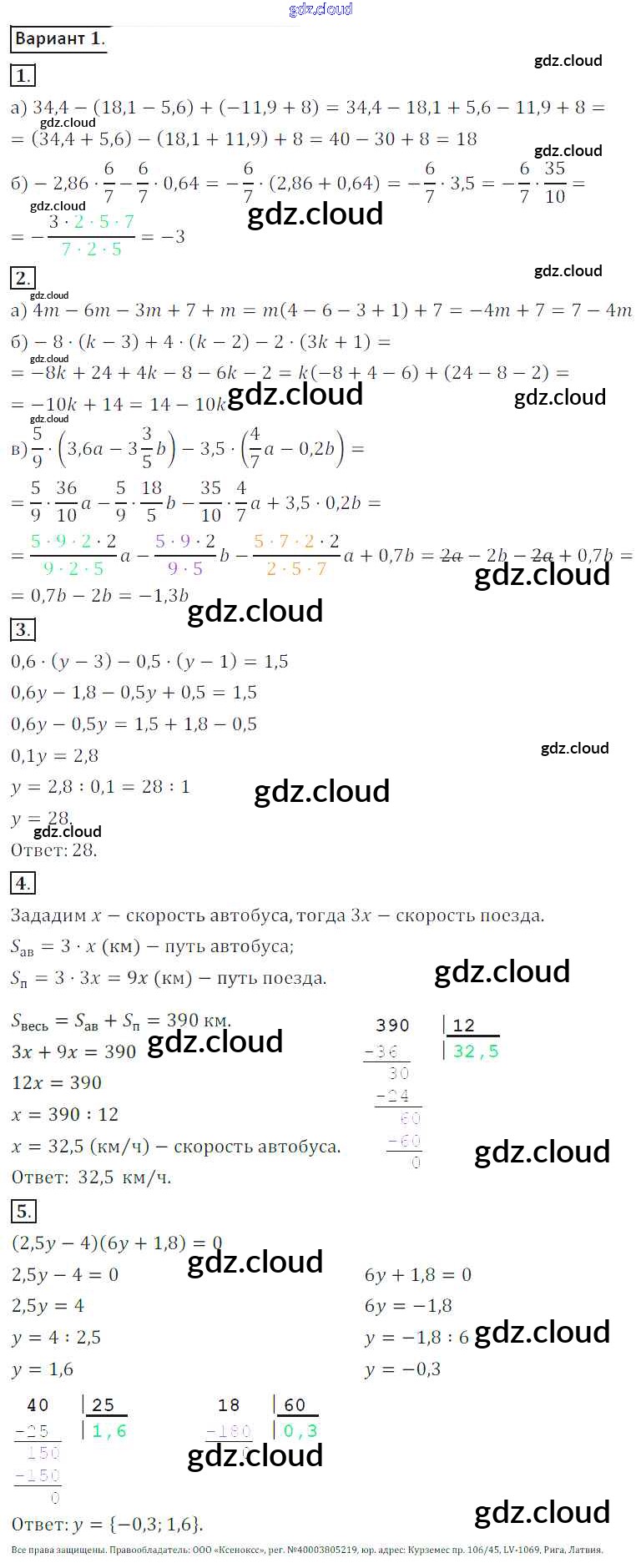 Ответ на задание 1 Контрольные работы Математика за 6 (шестой) класс Жохов, Крайнева 2011