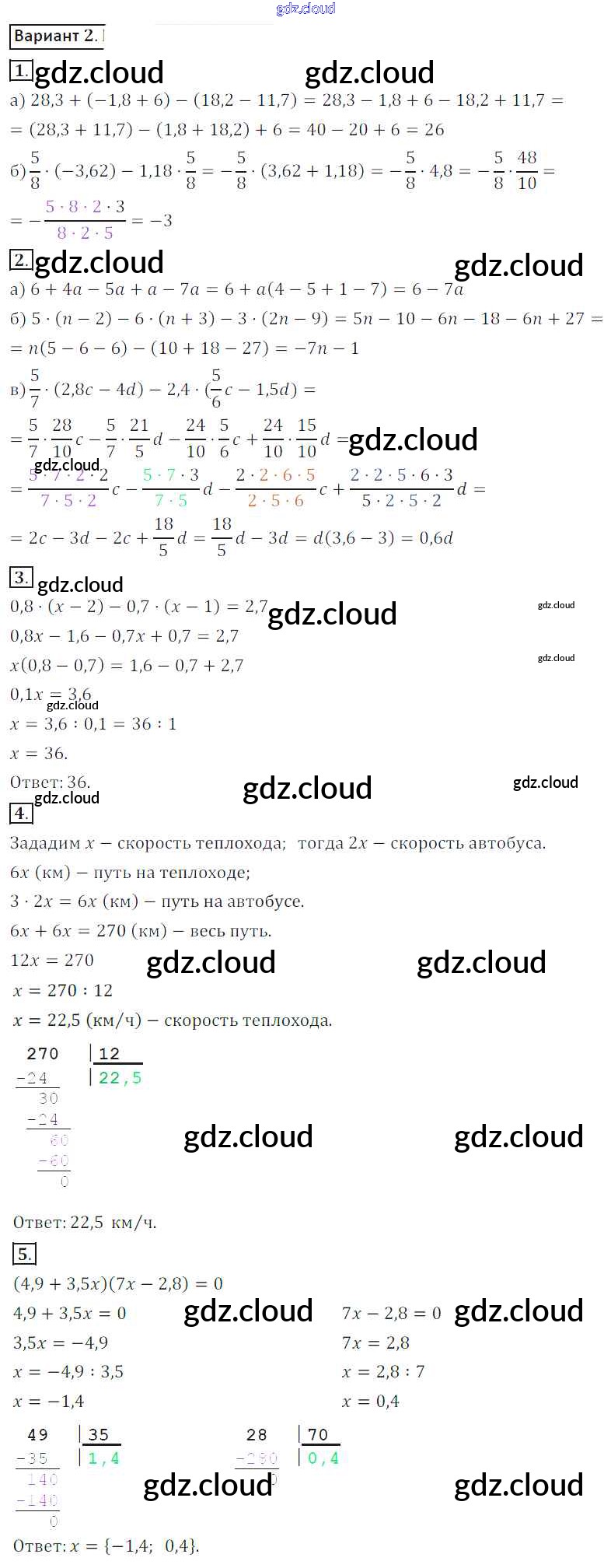 Ответ на задание 2 Контрольные работы Математика за 6 (шестой) класс Жохов, Крайнева 2011