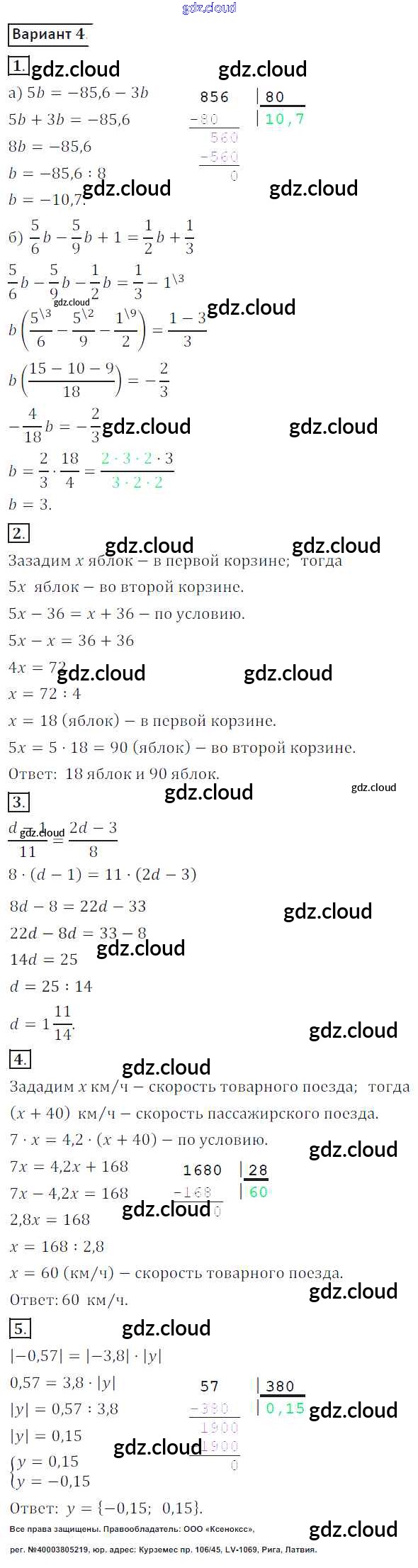 Ответ на задание 4 Контрольные работы Математика за 6 (шестой) класс Жохов, Крайнева 2011