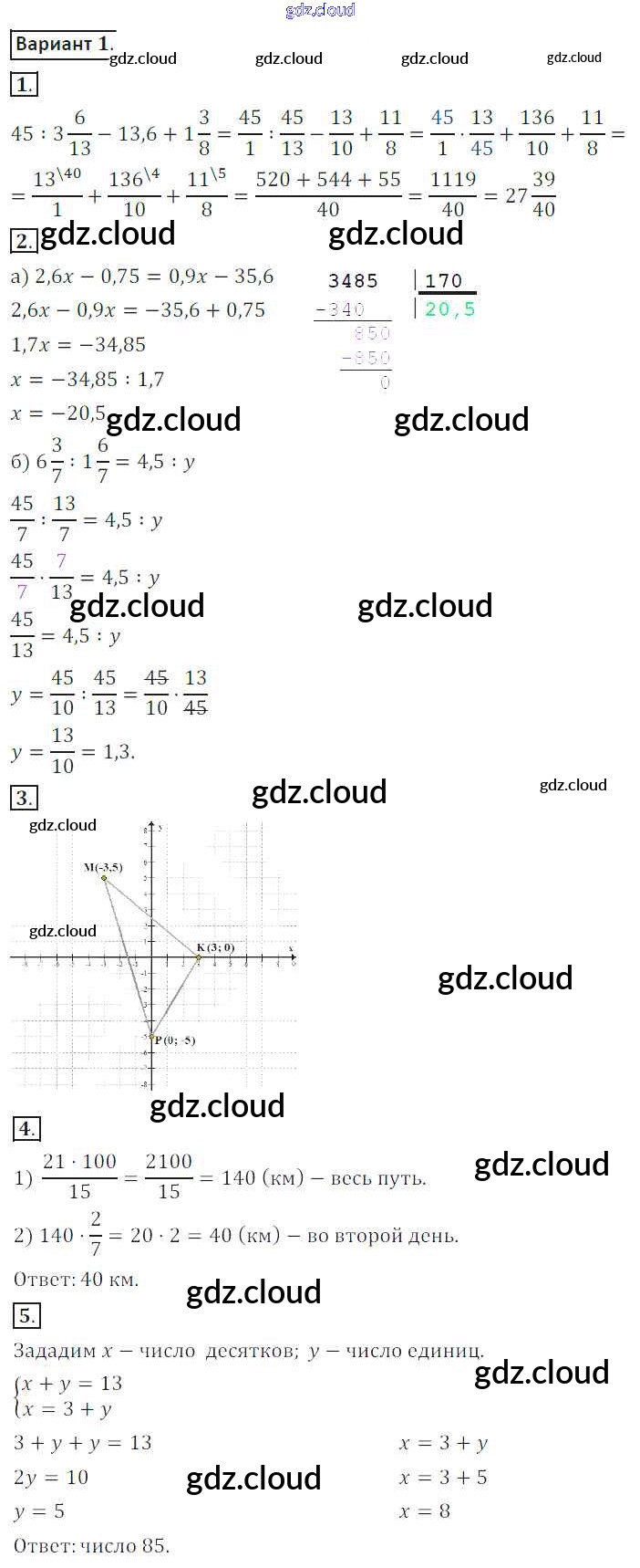 Ответы к КР-15. Варианты по Математике 6 класс Контрольные работы Жохов Мнемозина