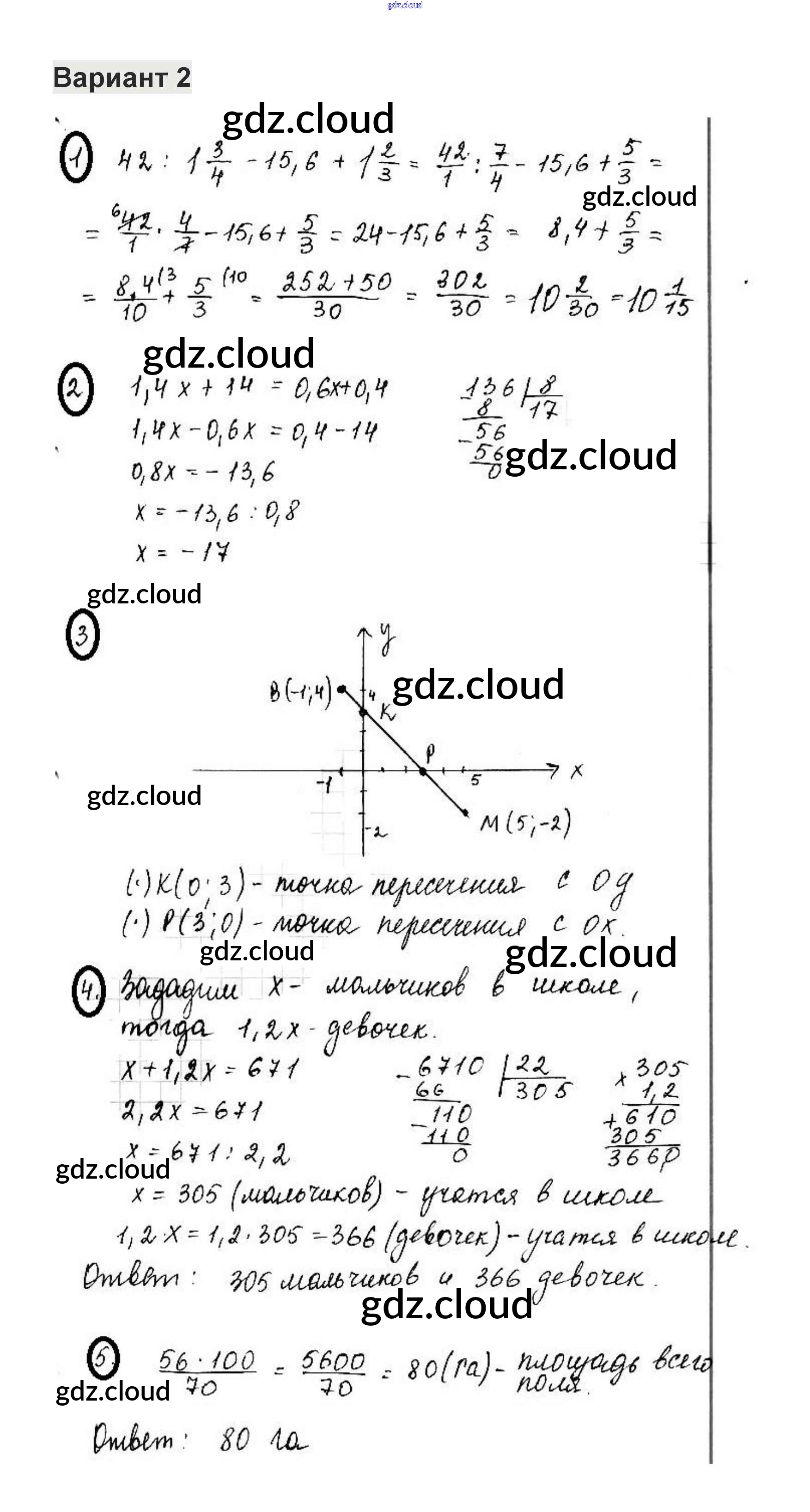Ответ на задание 2 Контрольные работы Математика за 6 (шестой) класс Жохов, Крайнева 2011
