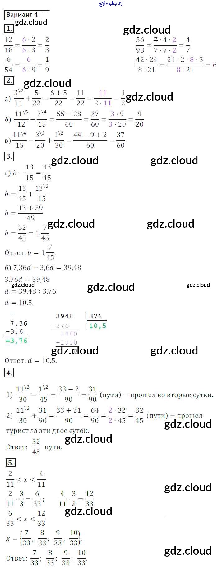 Ответ на задание 4 Контрольные работы Математика за 6 (шестой) класс Жохов, Крайнева 2011
