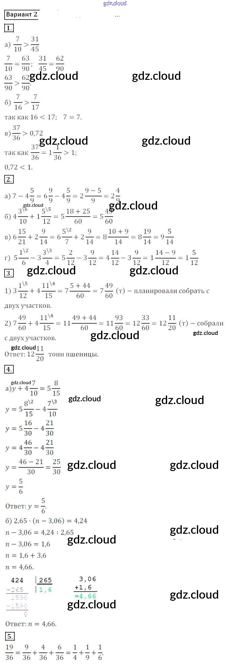 Ответ на задание 2 Контрольные работы Математика за 6 (шестой) класс Жохов, Крайнева 2011
