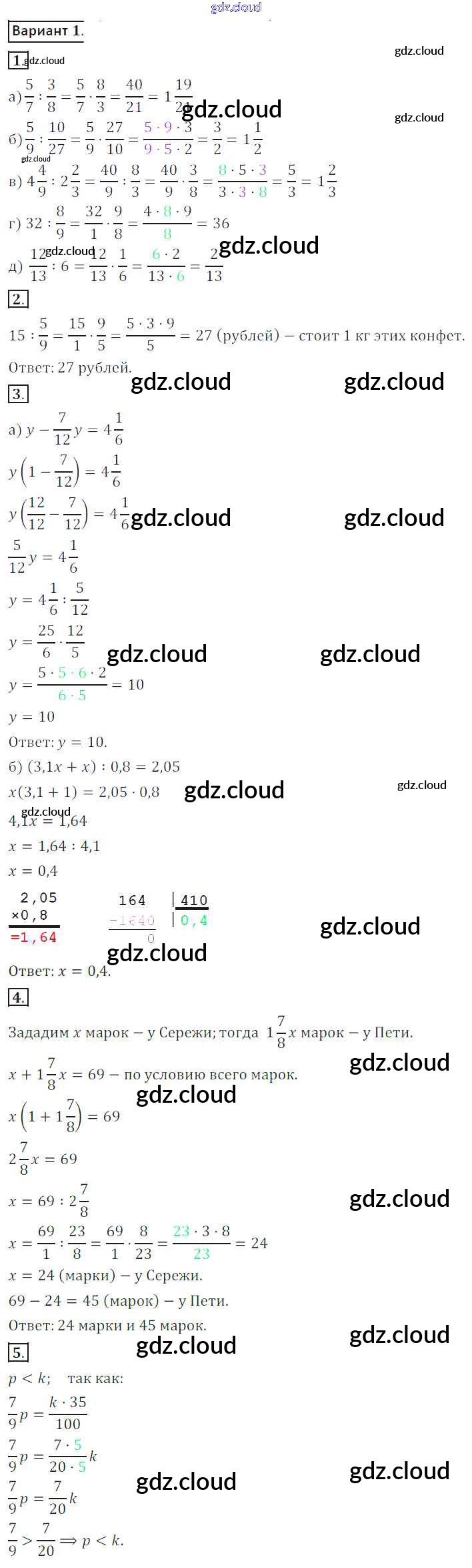 Ответ на задание 1 Контрольные работы Математика за 6 (шестой) класс Жохов, Крайнева 2011
