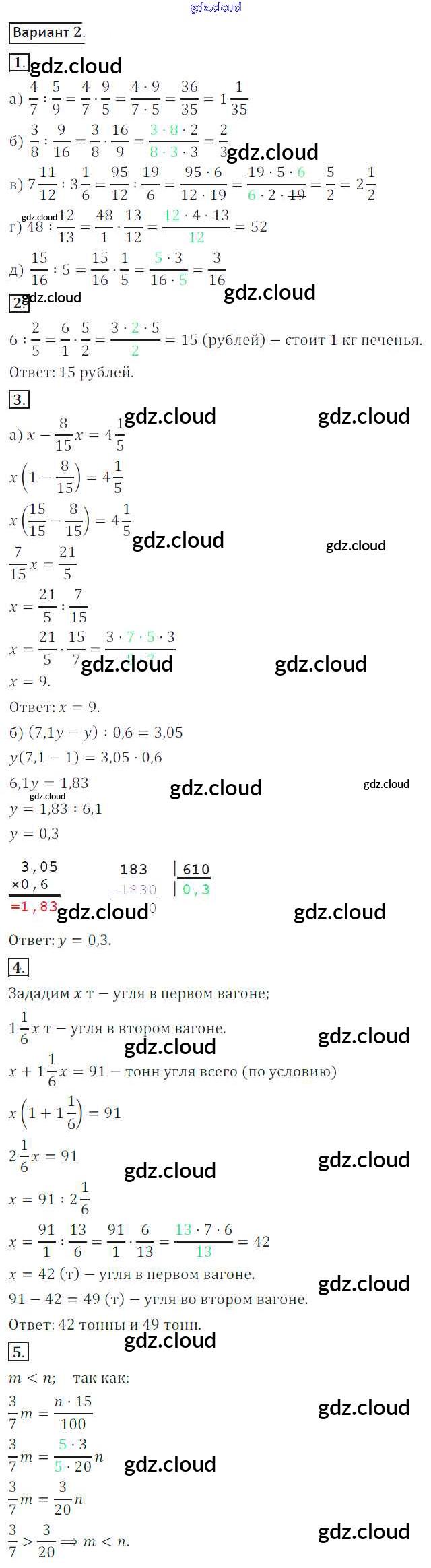 Ответ на задание 2 Контрольные работы Математика за 6 (шестой) класс Жохов, Крайнева 2011