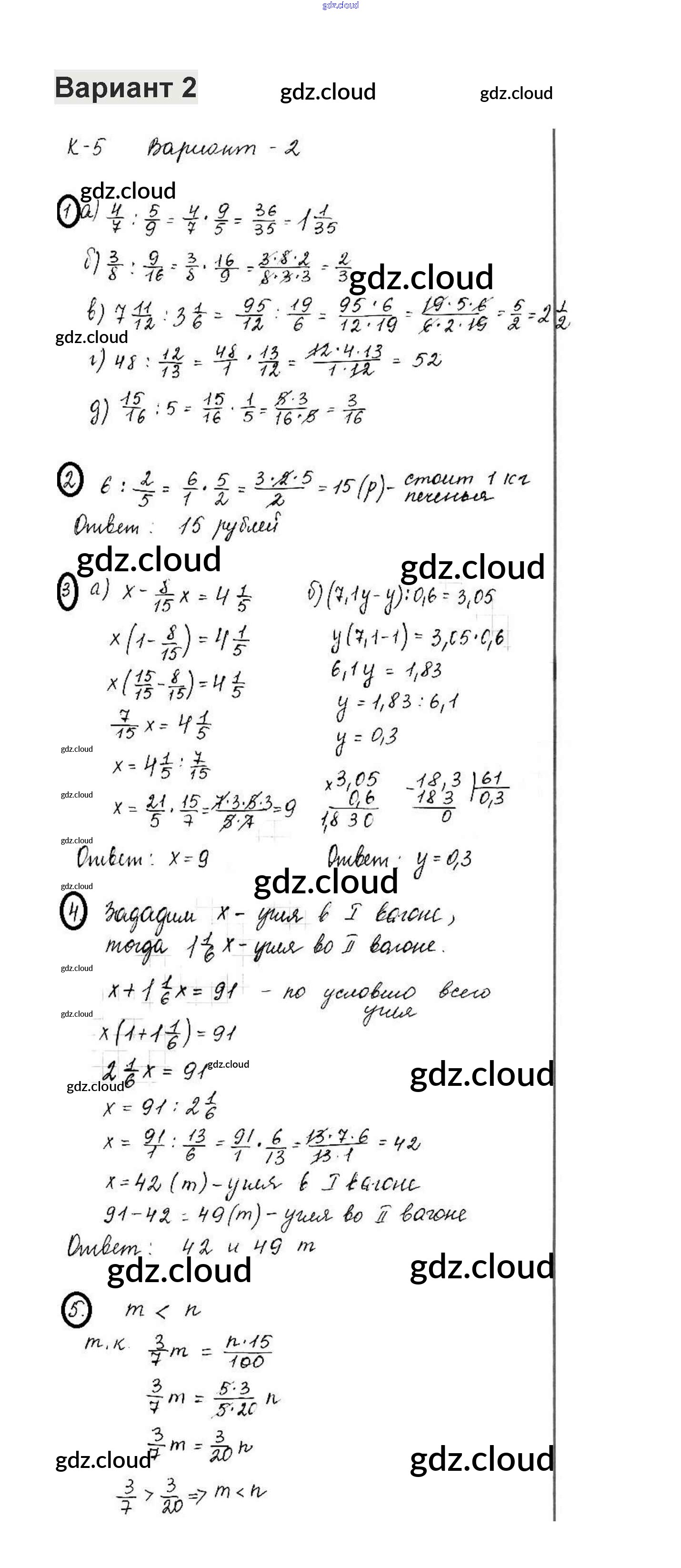 Ответы к КР-5. Варианты по Математике 6 класс Контрольные работы Жохов Мнемозина