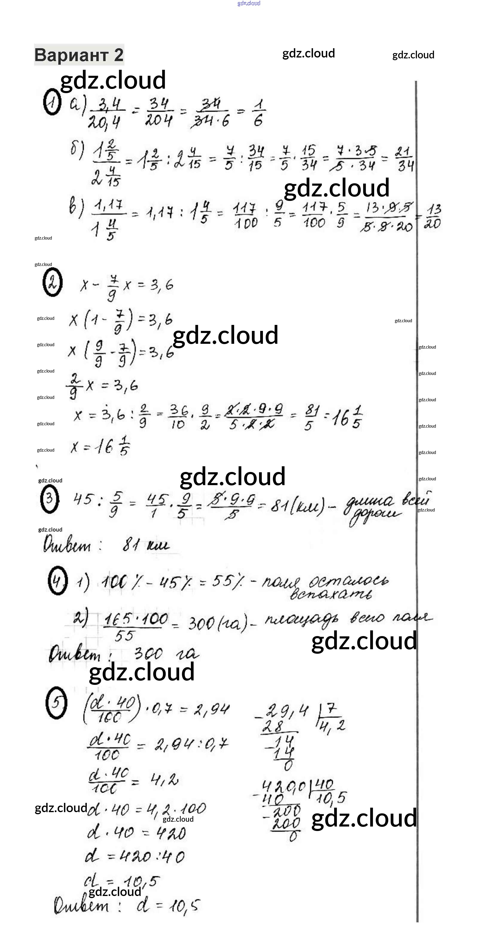 Ответ на задание 2 Контрольные работы Математика за 6 (шестой) класс Жохов, Крайнева 2011