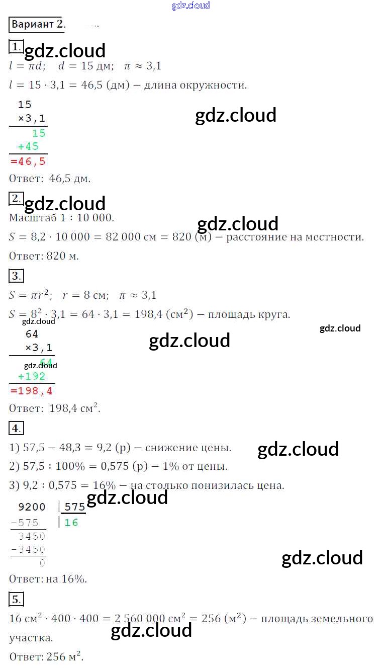 Ответ на задание 2 Контрольные работы Математика за 6 (шестой) класс Жохов, Крайнева 2011