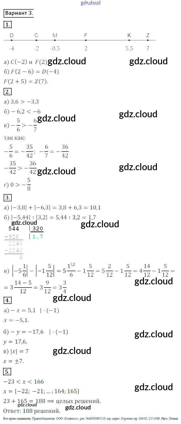 Ответ на задание 3 Контрольные работы Математика за 6 (шестой) класс Жохов, Крайнева 2011