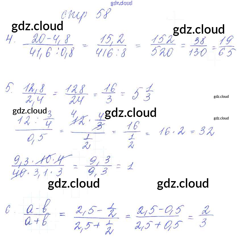 Ответ на задание стр.58 Рабочая тетрадь Математика за 6 (шестой) класс Рудницкая УМК 2013 Часть 1, 2 ФГОС онлайн и без номера телефона.