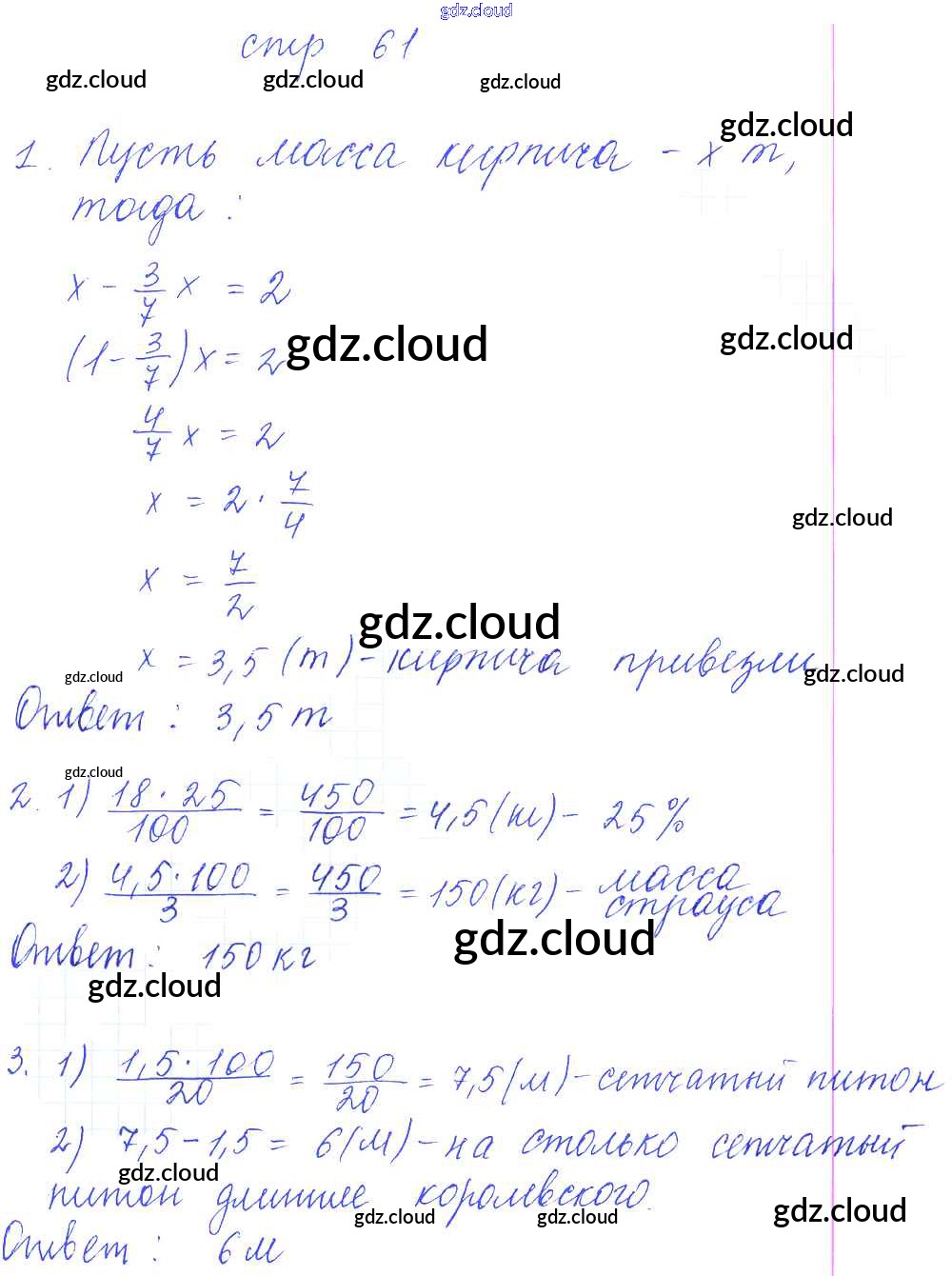 Ответ на задание стр.61 Рабочая тетрадь Математика за 6 (шестой) класс Рудницкая УМК 2013 Часть 1, 2 ФГОС онлайн и без номера телефона.