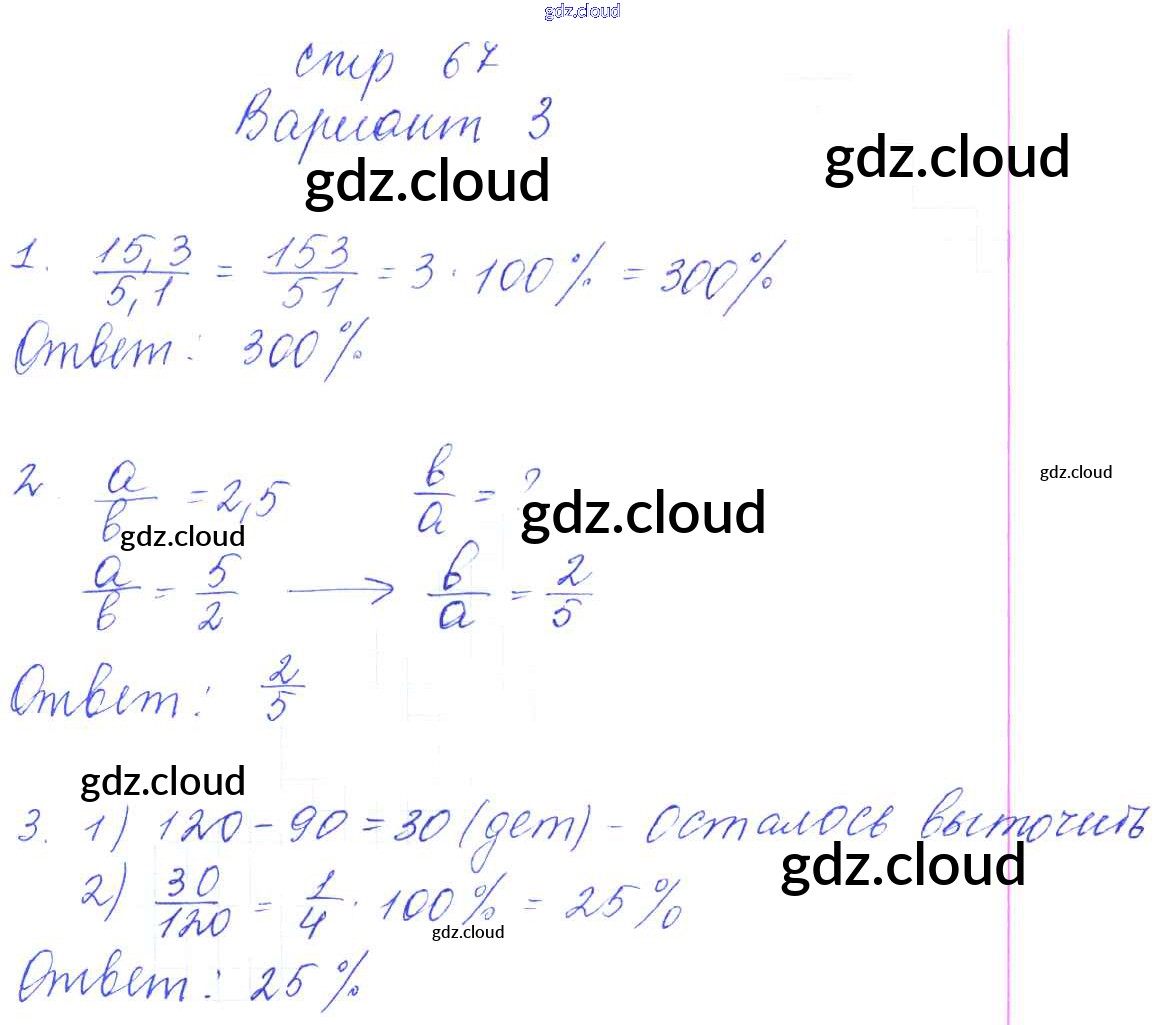 Ответ на задание стр.67 Рабочая тетрадь Математика за 6 (шестой) класс Рудницкая УМК 2013 Часть 1, 2 ФГОС онлайн и без номера телефона.
