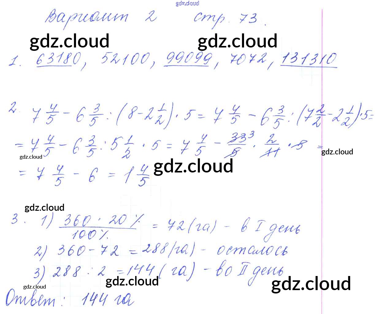 Ответ на задание стр.73 Рабочая тетрадь Математика за 6 (шестой) класс Рудницкая УМК 2013 Часть 1, 2 ФГОС онлайн и без номера телефона.