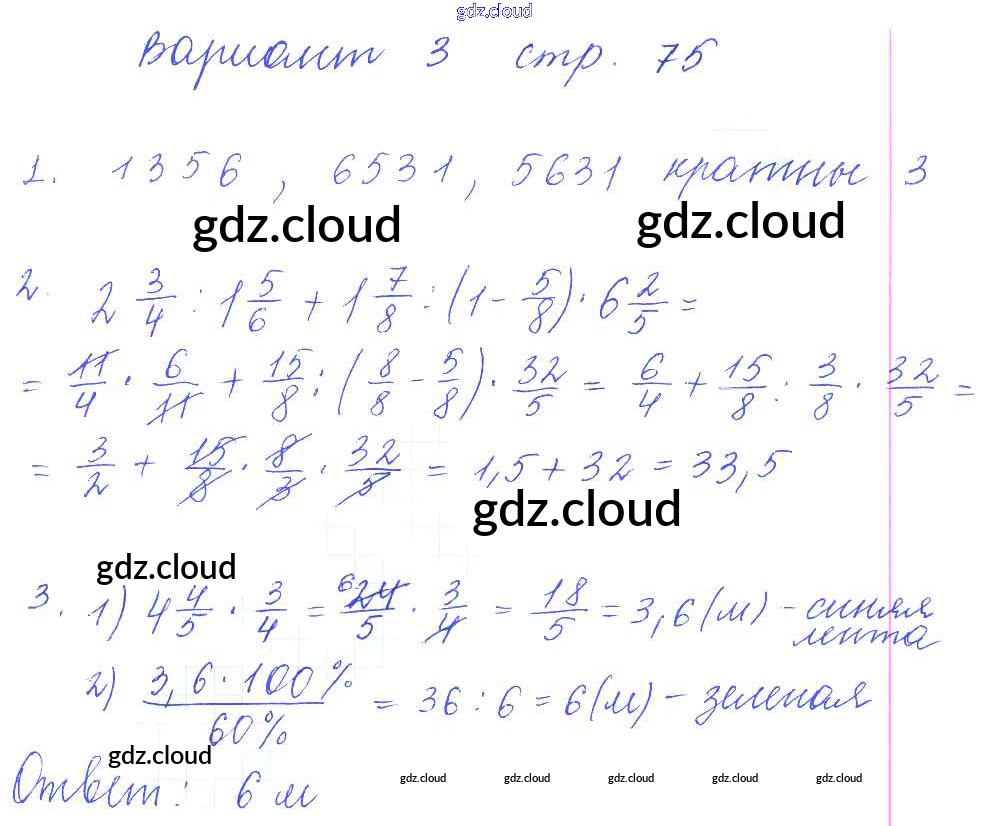 Ответ на задание стр.75 Рабочая тетрадь Математика за 6 (шестой) класс Рудницкая УМК 2013 Часть 1, 2 ФГОС онлайн и без номера телефона.